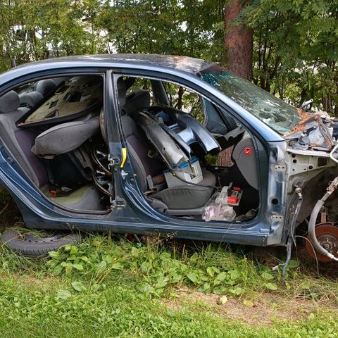 Etupuskuri, konepelti ja jäähdyttimet rikki. Peräpää hyvässä kunnossa.