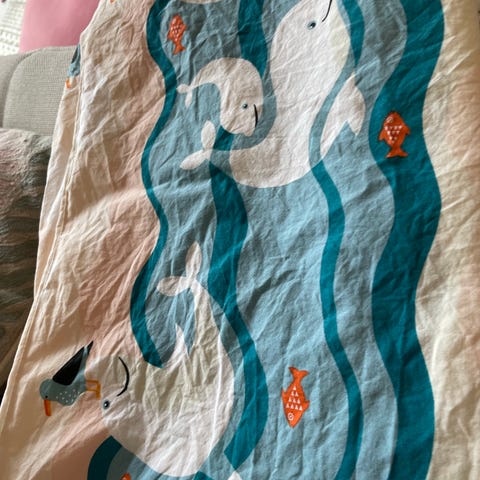 Sopii peittoon kooltaan 80x120. Ostettu uutena, ollut käytössä yhdellä lapsella. Ei kotieläimiä. Pesty hajusteettomasti.