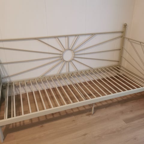 Myydään tukeva, viininpunainen rautasänky. Jälkiä löytyy, mutta muuten hyväkuntoinen.