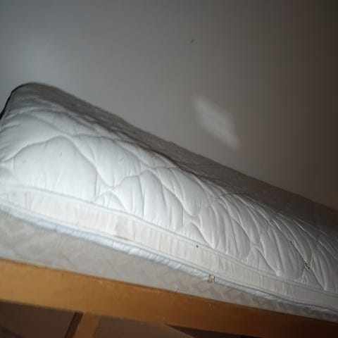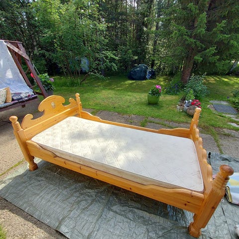 Vaneripohjan koko 65x181. (Menee vähän isompi patja.)
