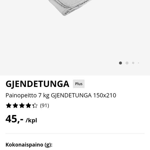 Myydään 4living Collection-merkkiset painopeitot (7kg). Jääneet vähälle käytölle alkuhuuman jälkeen, kunto siisti ja hyvä.