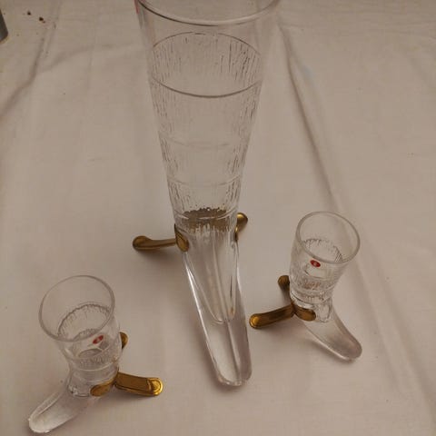 Iittala Harald iso sarvi kirkasta lasia. Lasi on muotoiltu erikoisesti, ja sen materiaali on läpinäkyvää lasia.