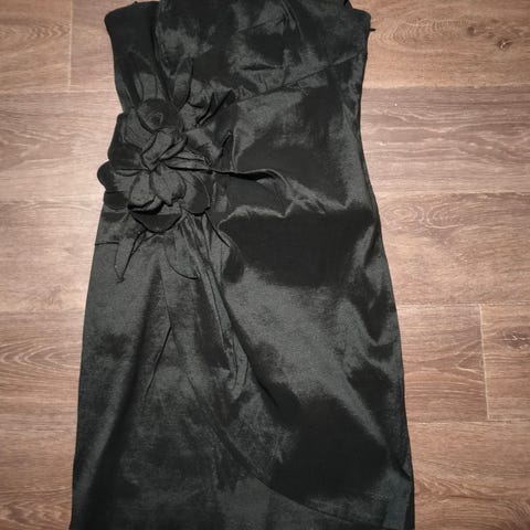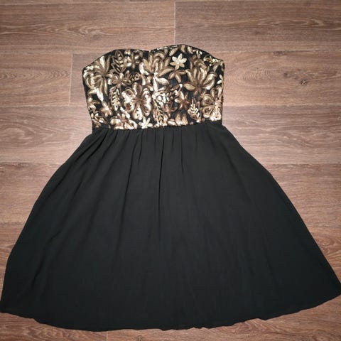 AMISU hihaton mekko juhlaan ja arkeen. Koko 40. Sopii myös pienemmälle. Mekossa on ohuet olkaimet ja napit edessä. Yläosa on kirjailtu ja alaosa kellohelma, materiaali on kevyt ja laskeutuva.