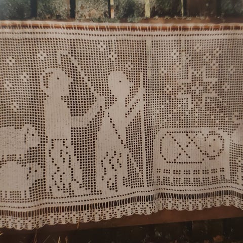 Kalastaja langasta virkattu, väri taittaa keltaiseen. Tankokuja 3 cm.