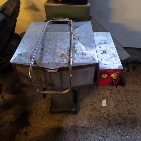 Sekä yksi pienempi grilli, jonka leveys on 50cm, syvyys 48cm ja korkeus 19cm.