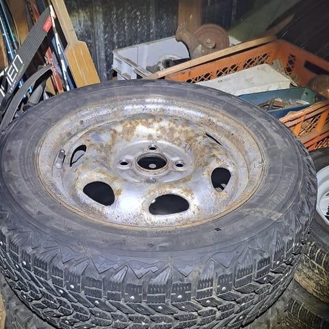 Talvirenkaat hyvillä laadukkailla nastoilla,ainut että renkaat on vanhat.. kaikki nastat tallella