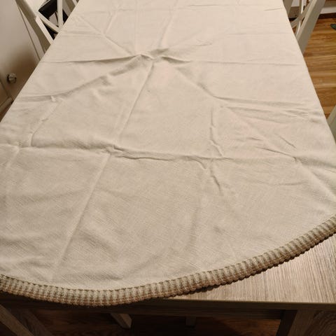 Pyöreä ruudullinen pöytäliina pellavasekoitetta