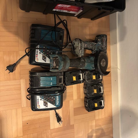 Makita 6271D porakone ja mutterinväännin sarja sisältää porakoneen, mutterinvääntimen, akun ja laturin. Akut parhaat päivänsä nähneet