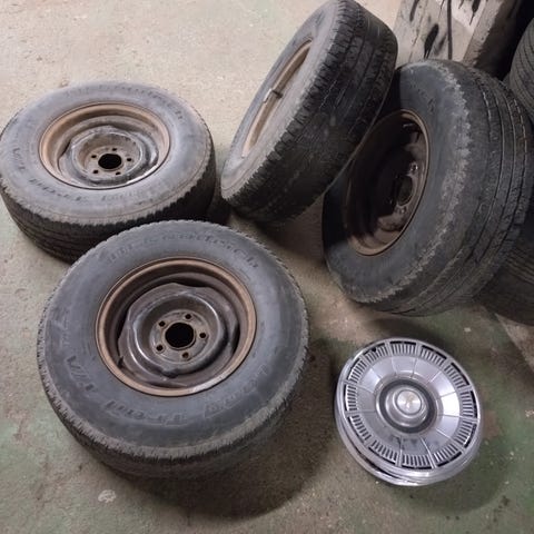 265/70-17 Gmc:n hienoilla vanteilla olevat, kohtuulliset talvirenkaat. Taitaa olla sama jako Chevy Vanissakin ja ainakin Ford Rangerissa.