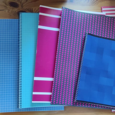 Koko 9 x 13 cm. Yhdessä vihkossa n. 115 arkkia. Muovikierresidonta. Hinta yhdeksälle vihkolle