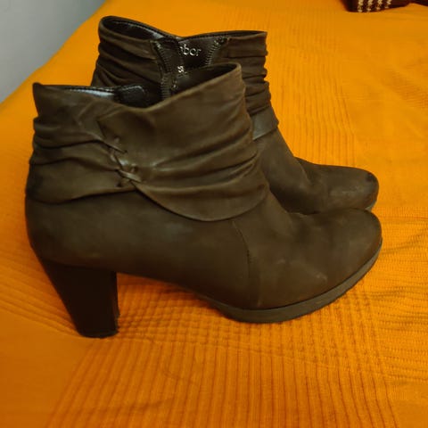Käyttämättömät, eli uudet Anna Fieldin samettiset nilkkurit koroilla.