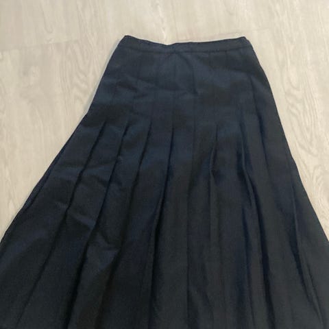 Tummansininen ns.puolihame Soilituote, koko 44. Vintagea 1970-luvulta. Oletettavasti polyesteriä, tuotelappu puuttuu.