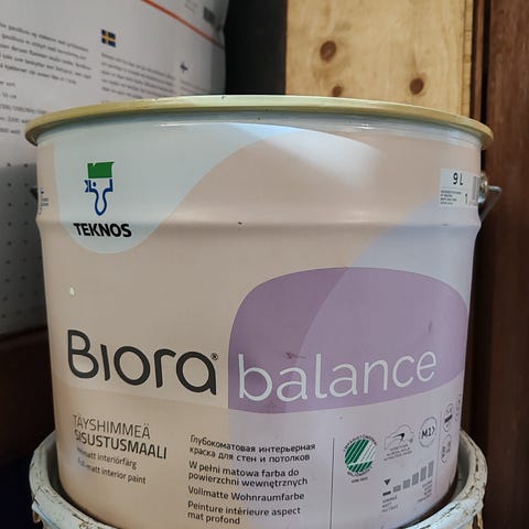 Teknos Biora 7 sisämaali 2.7 litran säiliössä, väri IHANA T1522. Maali soveltuu kuivien tilojen maalaukseen.