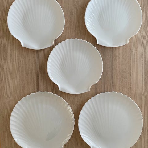 Mustat simpukkalautaset ja kulhot. Hinta 3 eur/kpl.