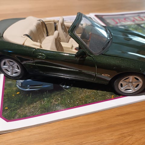 Alkuperäisessä pakkauksessa Jaguar XK 120 roadster keräilyauto, valmistaja Bburago, suhde 1:24.