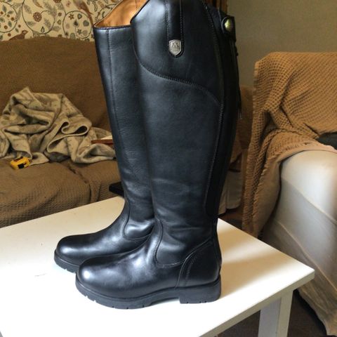 Noin 5 kertaa käytetyt nahkaiset ratsastussaappaat. Ovat olleet minulle ns 2-saappaina, kun toisien vetoketjut oli korjattavana. Hevosharrastuksen loputtua myyn pois. Koko 37 ja varsi on short/regular. Kärjissä muutama nirhauma, näkyy kuvissa. Saappaat ei ole mukautuneet vielä omaan jalkaan eli on uutta vastaavan napakat. Ovh edelleen 300€. Oheisesta linkistä näkee lisätietoja ja kokotaulukkoa, mutta pohkeen ympärys ulkopuolelta mitattuna, venyttämättä 37,5cm ja takapituus (kengän koron yläpuolelta mitattuna) 42cm.
