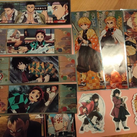 Myydään kuvan mukaisia tarroja, mm. Tanjiro Kamado, Nezuko Kamado, Hashibira Inosuke.