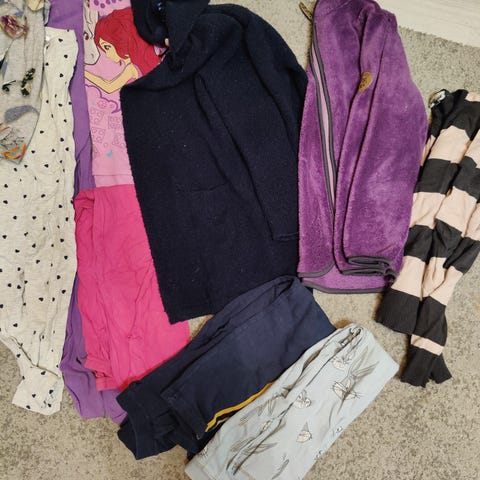 Myynnissä tyttöjen vaatepaketti koossa 134 cm.