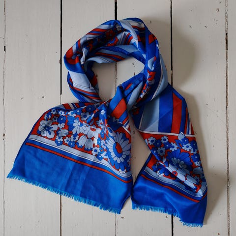 Vintage huivi jota voi kyllä käyttää vaikka pöytäliinana sisustuksessa. Normaalia pientä ajanpatinaa niinkuin noissa tuollaisissa kankaissa aina näyttää olevan. Katso siis kuvat