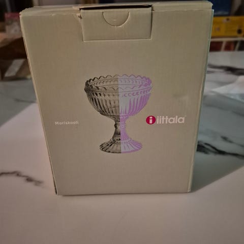 Iittala Jälkiruokakulho valmistettu kirkkaasta lasista. Kulho on jalkallinen ja sopii jälkiruokien tarjoiluun tai koristekäyttöön.