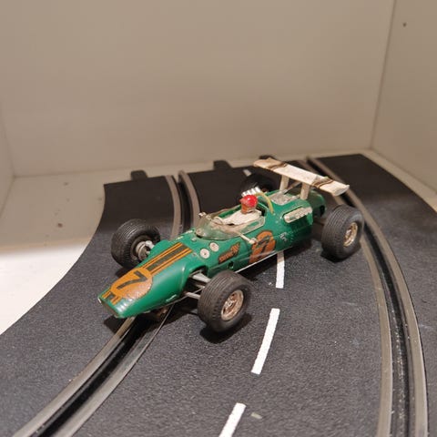 Vintage Scalextric March-Ford autorata auto. Tuulilasi puuttuu. Kokoluokka 1:32 eli sopii yleisimmille autoradoille mm. Scalextric, Carrera, SCX, Ninco, Polistil, Fleischmann yms. Nouto tai postitus +9€.