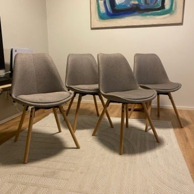 Samettiset ruokapöydän tuolit 4kpl. Väriltään harmaa/sinertävä. Jalat saa irti
