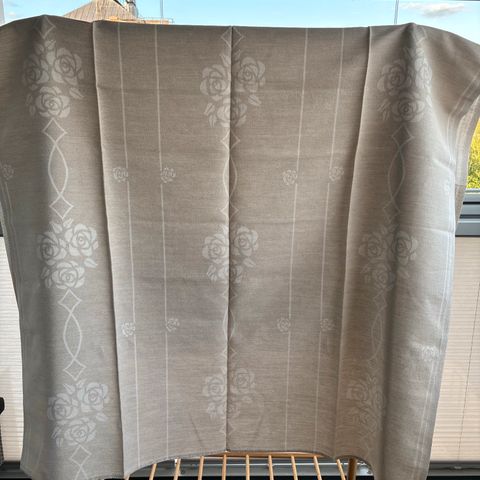 Lapuan Kankurit pöytäliina, valmistettu pellavasta, design Marja Rautiainen, väri vaalea, ruusukuvio. Käyttämätön, alkuperäinen pakkaus.