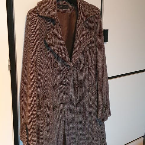 Seppälä vintage Reflex Women villakangastakki koossa 42. Väri ruskea/musta. Materiaali 80% villa, 20% akryyli. Takissa on kaksirivinen napitus ja sivutaskut. Kainalo-kainalo 55cm.