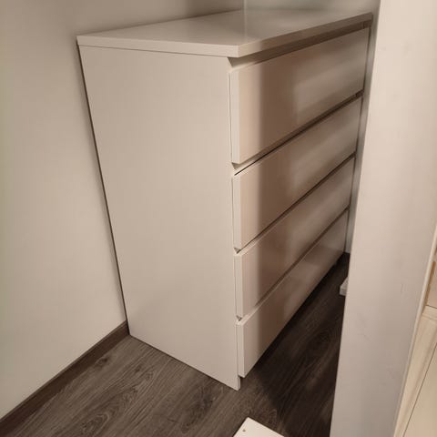 Musta Ikean Malm lipasto. Yhden laatikon ruuvi revennyt ja tarvitsee uusia. Laatikko kyllä toimii, mutta on vähän vinossa. Pikainen nouto.