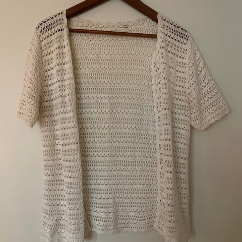 Ihana valkoinen / kirjava virkattu jakku/ neuletakki.