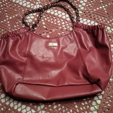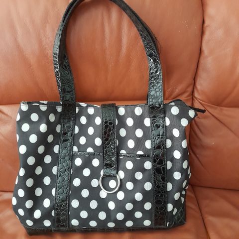 Nahkainen musta-punainen käsilaukku 20cmx24cm