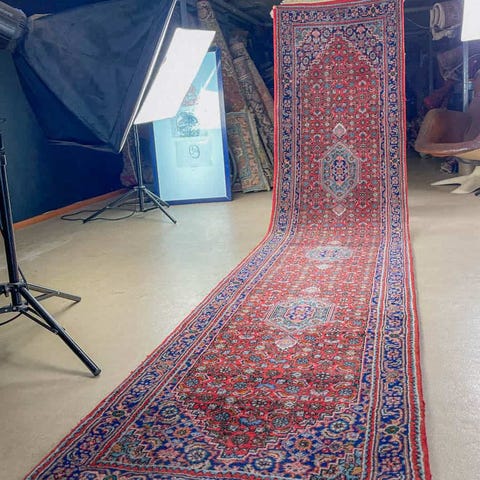 Maaginen käsinsolmittu itämainen käytävämatto – 415 x 80 cm