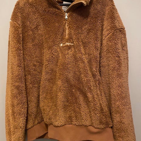 Championin jenkeistä tilattu swetari, paksua Super Fleece-mallistoa. Mitoitus on jenkki-Championin tapaan väljä. Myynnissä myös saman malliston baseball/varsity-takki, molempien ostajalle alennusta.