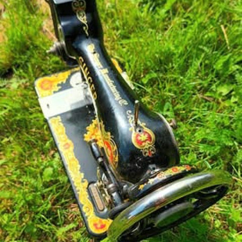 Ompelelu kone vuodelta 1903 entisöintiin tms. Osat liikkuvat hyvin. Rautajalusta siisti.