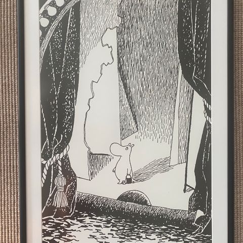 Muumien Taikuri-taulu, kehysten koko 42 cm x 32 cm, kunto erinomainen, hinta 15€.