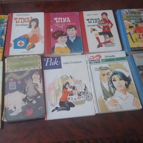 Kokoelma suomalaisia lastenkirjoja, sisältäen muun muassa teoksia kuten Ilmari Kiannon Tarulinna' jne.