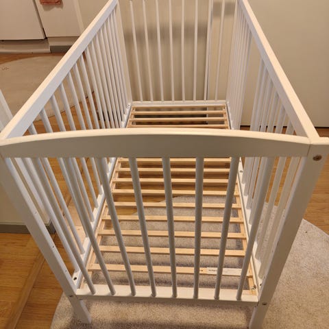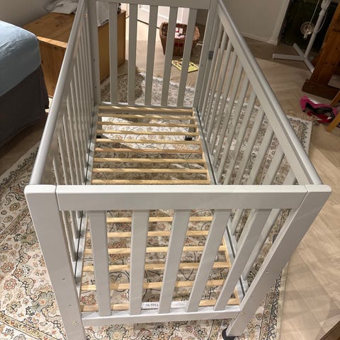 Ostettu Stockmannilta 2023. Erittäin hyvässä kunnossa, kuin uusi. Patja, pieni peitto ja makuupussi sisältyvät sängyn hintaan.