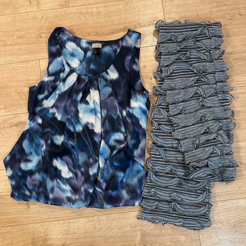 Kaunis sininen toppi. Kerroksittain laskeutuva kangas. Koko 42