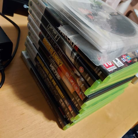 Fallout new vegas ultimate edition ja Red dead redemption game of the year edition käytännössä uudenveroisia, jokin aika sitten ostettu uutena ja paketit avattua jäivätkin sitten hyllyyn pelaamattomiksi.