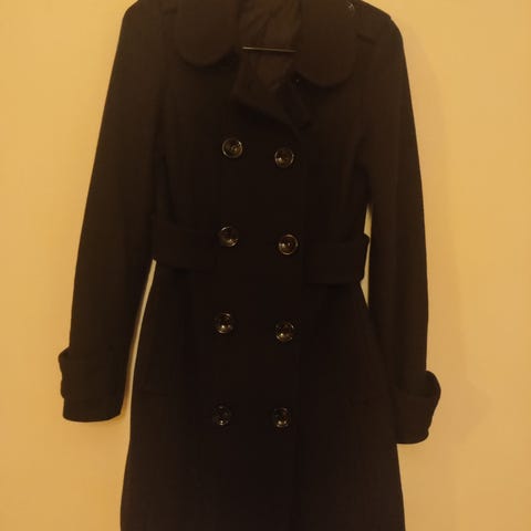 Viininpunaisen- ja mustankirjava villakangastakki, H&M, koko 34 (xs)