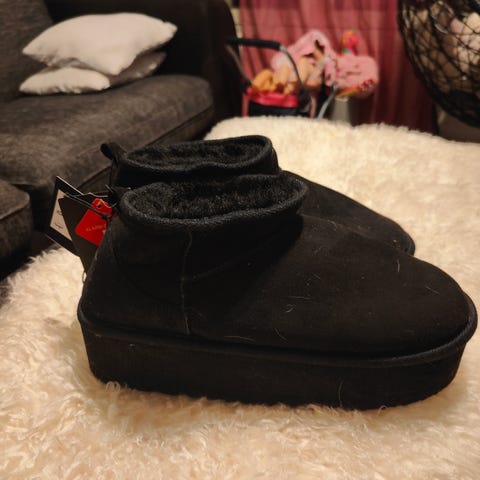 ESPRIT Talvikengät, koko 39. Mustat, varressa pörröä koristeena. Ihanan lämpimät jalassa. Sisällä pörrövuori. Eivät ole olleet lainkaan käytössä.