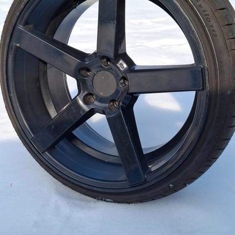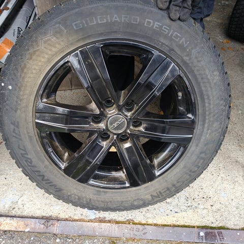 Hyvässä kunnossa olevat kesärenkaat aluvanteilla. Kulutuspintaa renkaissa 3-4mm.