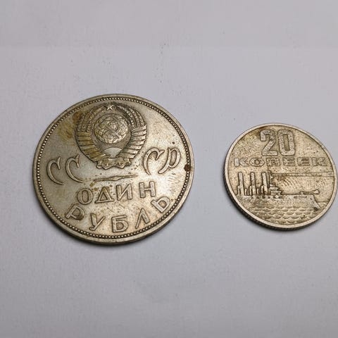 Neuvostojen Sosialististen Tasavaltojen Liitto Juhlakolikko muovissa. Halkaisija - 30 mm.