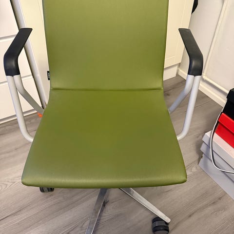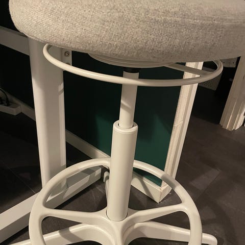 Iskusta ostettu aktiivituoli. Prototyyppi. Mahdollistaa tasapainottelun. Korkeussäätö. Jalka maalattu valkoiseksi (koivuvaneri).
