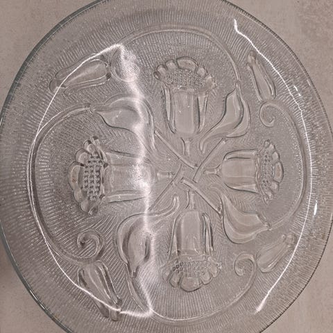 Halkaisijaltaan 34 cm oleva painava lasilautanen