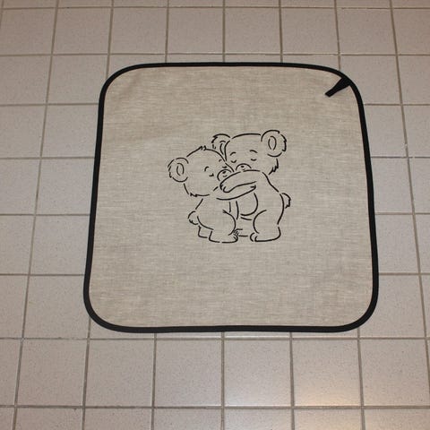 Uusi 30x50cm pyyhe, käsinpainettu halinallet/halaavat nallet kuva.