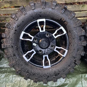 Polaris Ranger 570 takarenkaat vähän käytetyt. Toinen eturengas puhki, molemmat eturenkaat sileät. Mukana vanteet