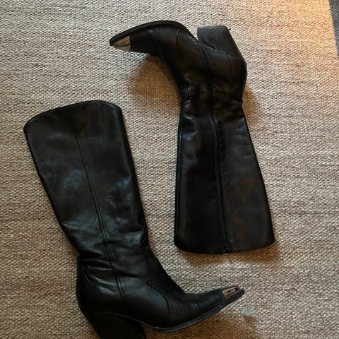 Mustat cowboy kengät hopeisella yksityiskohdalla. Huom koron kunto! 41