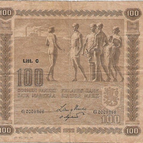 Myytävänä kuvien mukainen 100 mk vuodelta -55.