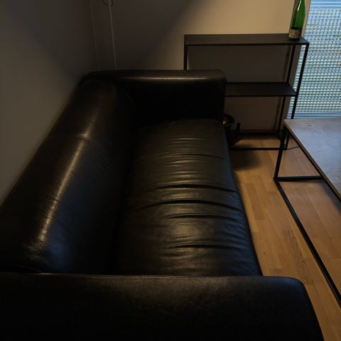 Kotimainen laadukas kolmen istuttava valkoinen nahkasohva. Kunto ikää nähden hyvä, käytön jälkiä kuitenkin näkyvissä.